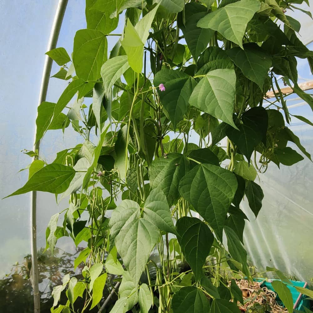 ‘Cobra’ is an extremely reliable climbing French bean (Phaseolus vulgaris) well known in Ireland. Found often in kitchen and market gardens here due to its consistent heavy crops. It produces well both inside an outside, even producing a great crop and ripening seed outside in the dismal 2024 summer. The beans are stringless, long (up to 20cm) and round.
